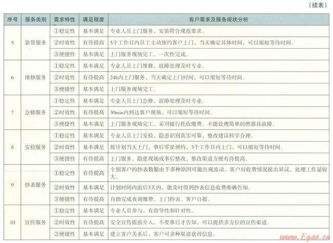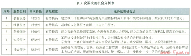 以客戶需求分析為導(dǎo)向的服務(wù)改善促進機制,是通過卡諾模型和三環(huán)六步法等管理工具,細分客戶需求,結(jié)合企業(yè)服務(wù)現(xiàn)狀,尋找服務(wù)改善機會,足以客戶需求為導(dǎo)向的管理理論與公司實際業(yè)務(wù)相結(jié)合的重要環(huán)節(jié),也是制定全年的重點服務(wù)工作和過程改進體系的重要參考依據(jù)。“客戶需求分析”和“服務(wù)改善促進機制”是以客戶需求為導(dǎo)向的管道燃氣優(yōu)質(zhì)服務(wù)模式從理論探索邁向?qū)嵺`的重要內(nèi)容和標志。
