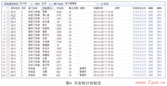 (2)計(jì)劃管理:實(shí)現(xiàn)燃?xì)夤灸甓劝矙z計(jì)劃,安檢隊(duì)月度安檢計(jì)劃和安檢人員月度安檢計(jì)劃的管理。