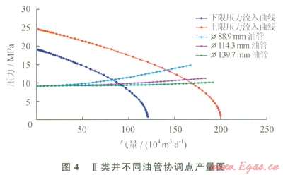 綜合考慮注采井協(xié)調(diào)點產(chǎn)量、沖蝕流量、攜液生產(chǎn)能力等因素。按照儲氣庫上限壓力(指地層壓力)24.6MPa、下限壓力l9.1MPa兩種情況,井口壓力6.4MPa,計算不同油管的最大合理產(chǎn)量。