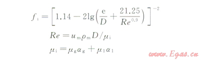 式中fi為氣液界面摩擦系數(shù),無因次;D為管道當(dāng)量直徑,m;Re為雷諾數(shù);mi為混合物黏度,Pa·s;mg為氣相黏度,Pa·s;ag為空泡率;m1為液相黏度,Pa·s;a1為持液率;CD為阻力系數(shù),無量綱,是Re的函數(shù):rm為混合物真實(shí)密度,kg/m3;um為氣液混合速度,m/s;當(dāng)um繼續(xù)增大,該平衡狀態(tài)將被打破,巖屑開始運(yùn)移;ui為巖屑顆粒床平均摩阻系數(shù),無因次;e為巖屑顆粒堆積空隙程度,無因次;a/b與巖屑堆積程度相關(guān),無因次。