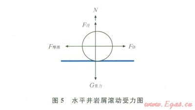 要確定單顆粒巖屑滾動(dòng)前進(jìn)最小氣液量則需要建立水平方向上的數(shù)學(xué)方程: