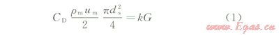 通過不同顆粒的重力(G)和不同材料摩擦阻力系數(shù)(k)則可反求最小流速(um)。