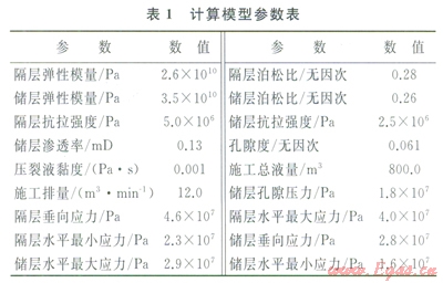 根據(jù)西南某地區(qū)的部分壓裂井的微地震監(jiān)測和測井解釋結(jié)果,發(fā)現(xiàn)該區(qū)塊的天然裂縫不發(fā)育,壓裂過程中,壓裂裂縫以平面裂縫為主,因此,本計算模型假設(shè)壓裂裂縫為平面縫。