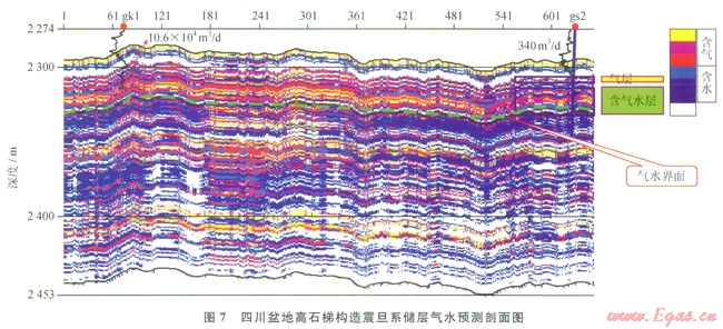 該構(gòu)造中三疊統(tǒng)雷口坡組構(gòu)造較復(fù)雜,斷層較發(fā)育,圈閉類型有構(gòu)造、巖性圈閉、巖性一構(gòu)造復(fù)合圈閉。該區(qū)工業(yè)井成功率37.5%,獲累計測試產(chǎn)量107.35×104m3/d,展示出其良好的勘探開發(fā)前景。但雷口坡組儲層氣水分布規(guī)律不清楚,造成開發(fā)部署困難、影響開發(fā)效果等。