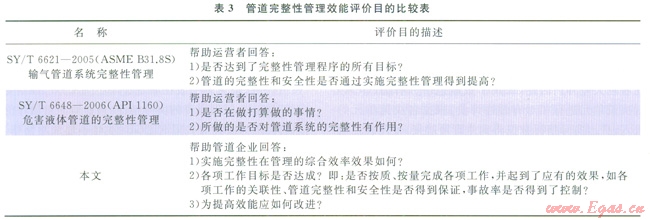 由于管道完整性管理的概念引入較晚,目前國(guó)內(nèi)法規(guī)還沒有針對(duì)管道完整性管理效能評(píng)價(jià)的相關(guān)要求。目前國(guó)內(nèi)主要遵照?qǐng)?zhí)行是將ASME B31.8S及API ll60等同采納而轉(zhuǎn)標(biāo)的2個(gè)推薦性行、世標(biāo)準(zhǔn),即《SY/T 6621—2005輸氣管道系統(tǒng)的完整性管理》及《SY/T 6648—2006危險(xiǎn)液體管道的完整性管理》,其中對(duì)于效能評(píng)價(jià)的相關(guān)要求與ASME B31.8S和API 1160的內(nèi)容一致。