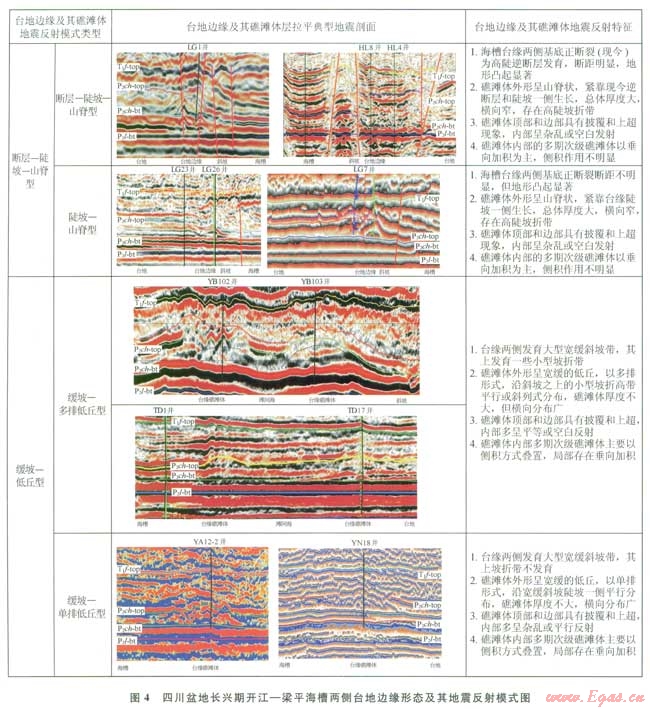 2.2.2不同臺緣帶礁灘體的地震反射特征