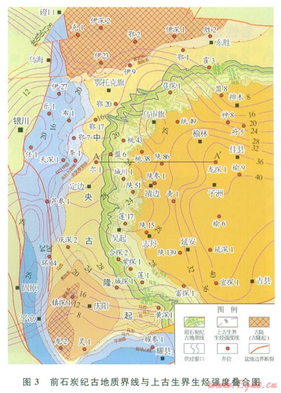 1)奧陶系膏鹽巖下地層在西側(cè)的前石炭紀(jì)剝露區(qū)與上古生界煤系烴源巖直接接觸,形成區(qū)域分布的帶狀“供烴窗口”。