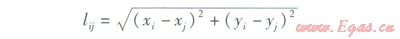 文獻(xiàn)[7—8]認(rèn)為燃?xì)夤芫W(wǎng)造價近似為管長的線性函數(shù),基于這種理論,當(dāng)量費用長度lw,ij的計算式為: