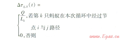 Lk——第五只螞蟻在本次循環(huán)中所走路徑的總長度