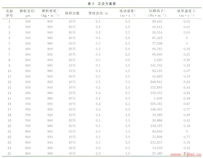從表3及方差分析可以看出,顆粒直徑對“臨界速度2”的影響效果最大,因此,開展水合物顆粒流動過程中的生長、碰撞以及聚結(jié)研究對降低“臨界速度2”,進而保證管線的安全輸送具有重要意義,同時,以上結(jié)論還對“冷流技術(shù)”實現(xiàn)的作用原理(防止水合物聚結(jié),減小水合物顆粒直徑,進而降低臨界速度)進行了闡釋[13-15]。