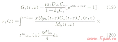 Talaghat等[13-6,45-46]在前人研究的基礎(chǔ)上通過小型循環(huán)管道中水合物的生成試驗(yàn),發(fā)展了水合物抑制劑體系下單組分氣體形成水合物的宏觀動(dòng)力學(xué)生長模型,并通過進(jìn)行一定的假設(shè),建立了低劑量水合物抑制劑體系下水合物的生成模型,進(jìn)而通過初始條件及邊界條件對模型進(jìn)行了求解,在此基礎(chǔ)上針對管道中水合物的生成規(guī)律提出了含水合物抑制劑體系下水合物的生長速率模型和氣體消耗速率模型。