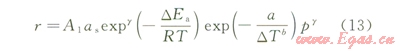 式中k1為速率常數(shù),kg/(m2·s·K);k2為溫度參數(shù),K;rgas為氣體消耗量,kg/s。