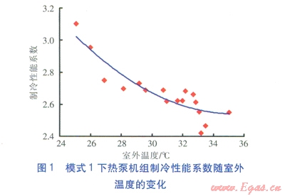 采用試驗方法,針對夏季工況,測試計算3種運行模式下熱泵機組的制冷性能系數(shù)、能效比,并進行比較。