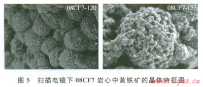 08CF7巖心粗粒組分中均出現(xiàn)黃鐵礦,其顆粒主