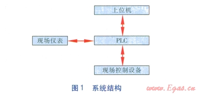 該系統(tǒng)中現(xiàn)場儀表及控制設(shè)備通過PLC通信將實(shí)時情況反饋給上位機(jī),并在上位機(jī)顯示相關(guān)數(shù)據(jù)。上位機(jī)通過PLC通信將指令發(fā)送到現(xiàn)場控制設(shè)備,對其進(jìn)行自動控制。