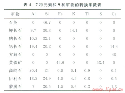 表l是Herron等人給出的一個9種礦物的轉(zhuǎn)換系數(shù),其中的XS Fe表示剩余鐵,w(H2O)min表示礦物中的水含量。