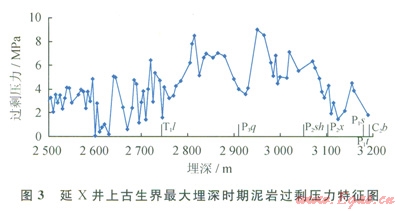 一般來說浮力和水動(dòng)力是油氣二次運(yùn)移的主要?jiǎng)恿?,在常?guī)油氣二次運(yùn)移過程中浮力和水動(dòng)力作用較強(qiáng)。但在鄂爾多斯盆地上古生界由于儲(chǔ)層成巖早期壓實(shí)作用和膠結(jié)作用強(qiáng)烈,因而在造成儲(chǔ)層致密化的同時(shí),也導(dǎo)致儲(chǔ)層中的自由水大為減少,從而難以產(chǎn)生較強(qiáng)的浮力和水動(dòng)力[28]。另一方面,流體南高勢(shì)區(qū)向低勢(shì)區(qū)運(yùn)移的原理只適用于連通的水力系統(tǒng),而不適用于多個(gè)封隔體之間。泥巖壓實(shí)研究表明,盆地上古生界地層在三疊紀(jì)末 白堊紀(jì)發(fā)育“非均衡壓實(shí)” [16-17,21,24,26],該區(qū)最大埋深時(shí)期(白堊紀(jì))泥巖過剩壓力幅度介于0~10MPa,過剩壓力峰值出現(xiàn)在三疊系劉家溝組—上石盒子組(圖3),在壓力封存箱的上下、側(cè)向高壓泥巖阻隔之間,很難出現(xiàn)區(qū)域運(yùn)移??梢姡鯛柖嗨古璧厣瞎派缛狈μ烊粴獯笠?guī)模、長(zhǎng)距離運(yùn)移的動(dòng)力條件。