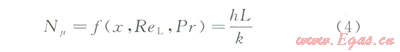 通過式(4)和(5)將對(duì)流換熱系數(shù)(h)的問題,轉(zhuǎn)為解決努賽爾系數(shù)的問題。