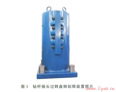 針對(duì)鉆桿接頭過轉(zhuǎn)盤面劃眼的操作難點(diǎn),研制了鉆桿接頭過轉(zhuǎn)盤倒劃眼裝置,滿足了鉆桿接頭及加厚部位過轉(zhuǎn)盤時(shí)的倒劃眼作業(yè)。