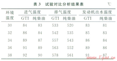 適用性試驗結(jié)論為:環(huán)境溫度較高時,發(fā)動機(jī)的排氣溫度和出水溫度均比純柴油的高,且出水溫度接近或超過報警值90℃;使用GTI的濟(jì)柴機(jī)組完全滿足正常鉆進(jìn)、提空游車、啟動鉆井泵、起下鉆等工況,司鉆操作方法與純柴油相同;GTI保護(hù)比較完善,在參數(shù)超過報警值時,會自動切換成純柴油模式。