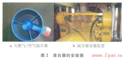 天然氣經(jīng)過安裝在柴油機(jī)空氣過濾器和渦輪增壓器之間的混合器進(jìn)入氣缸參與燃燒,經(jīng)改造后的混合燃料發(fā)動機(jī)能維持柴油機(jī)相同的性能?;旌先剂习l(fā)動機(jī)可以在100%柴油模式和混合燃料模式之間自由切換,并且維持轉(zhuǎn)速和負(fù)荷不變。