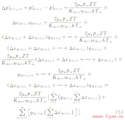 當(dāng)儲層流體為氣時,根據(jù)壓力函數(shù)的定義和真實氣體狀態(tài)方程,并將地下產(chǎn)量轉(zhuǎn)換成地面標(biāo)準情況下的氣體產(chǎn)量[4,10],式(3)可寫為: