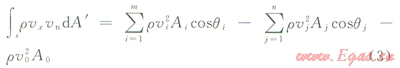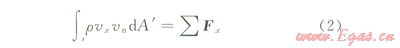 式中vx為x軸方向的分速度,m/s;vn為流體速度,m/s;Fx為作用于控制體上的力在x軸方向的分量,N。