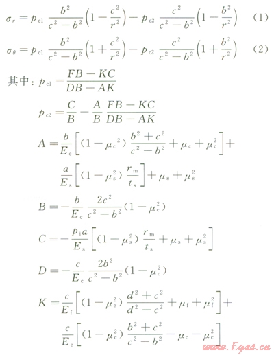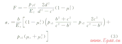 水泥環(huán)應力分布及一界面處水泥環(huán)位移計算公式: