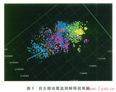 通過實(shí)時(shí)微地震監(jiān)測技術(shù)的應(yīng)用,對于完成壓裂施工、優(yōu)選射孔井段、優(yōu)化參數(shù)及提高產(chǎn)能具有很好的指導(dǎo)性[12]。本地區(qū)頁巖氣水平井壓裂微地震監(jiān)測結(jié)果表明,壓裂裂縫延伸方向受地應(yīng)力與天然裂縫雙重因素控制,已實(shí)施井微地震監(jiān)測結(jié)果表明實(shí)現(xiàn)了形成復(fù)雜裂縫網(wǎng)絡(luò)的體積壓裂目標(biāo),表明水平井分段體積壓裂工藝可滿足頁巖氣水平井改造要求(圖5)。