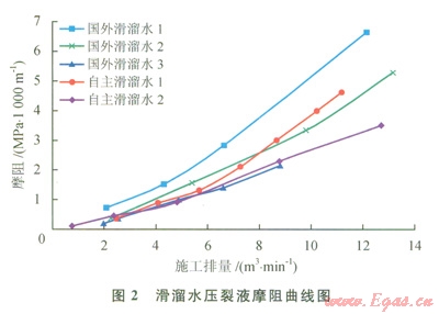 滑溜水壓裂液摩阻和成本均較低,其較之交聯(lián)凍膠更容易形成復(fù)雜的裂縫網(wǎng)絡(luò),滿足頁巖氣體積壓裂改造的工藝要求,成為頁巖氣體積壓裂改造的主要工作液。四川地區(qū)下寒武統(tǒng)筇竹寺組和下志留統(tǒng)龍馬溪組儲層段全巖分析和巖石力學(xué)實(shí)驗(yàn)結(jié)果表明,該地區(qū)頁巖儲層巖石水敏指數(shù)弱[4]、脆性指數(shù)較高,低黏度滑溜水易進(jìn)入次生微裂縫,從而產(chǎn)生復(fù)雜的網(wǎng)狀裂縫,形成最大化的增產(chǎn)改造體積。
