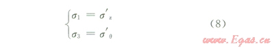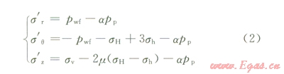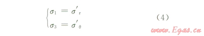 當(dāng)徑向應(yīng)力為最大主應(yīng)力、周向應(yīng)力為最小主應(yīng)力時(shí),井壁上的應(yīng)力狀態(tài)為:
