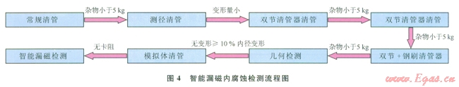 靖邊氣田采用高清晰智能漏磁檢測技術(shù)對3號干線進行了不停輸內(nèi)腐蝕檢測。具體施工流程如圖4所示。