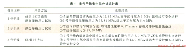 近年來,靖邊氣田主要對1號、2號、3號干線等集氣干線進行了安全性分析,分析結(jié)果見表4。