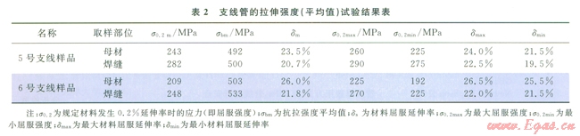 從試驗結(jié)果看出,母材的屈服極限明顯的低于焊縫,特別是6號支線的母材最小屈服極限(192MPa)已低于有關(guān)規(guī)定的最小值。