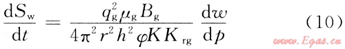 由于氣井開始生產(chǎn)后,地層壓力下降,水相開始蒸發(fā),氣體中的含水量逐漸增加,在無邊底水的儲(chǔ)層中會(huì)造成地層含水飽和度的減小,因此有必要研究近井區(qū)含水飽和度的變化規(guī)律。