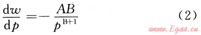 在氣井卸壓生產(chǎn)的過程中地層溫度基本恒定,影響天然氣中蒸汽含量變化的主要是壓力,當(dāng)不考慮溫度的影響時(shí),對(duì)式(1)求導(dǎo)得: