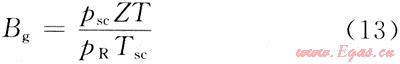 將psc=0.101MPa,Tsc=293K和式(13)代入式(12),并改為以SI制礦場(chǎng)實(shí)用單位表示時(shí)式(12)為: