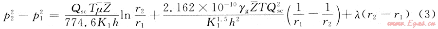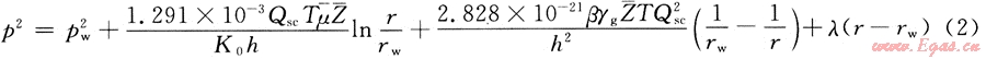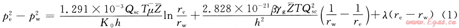 氣井的產(chǎn)量為Qsc,氣體的黏度為μ,氣體的偏差系數(shù)為Z,啟動壓力梯度為λ,結合氣井的穩(wěn)態(tài)產(chǎn)能方程[3],同時考慮啟動壓力梯度,有