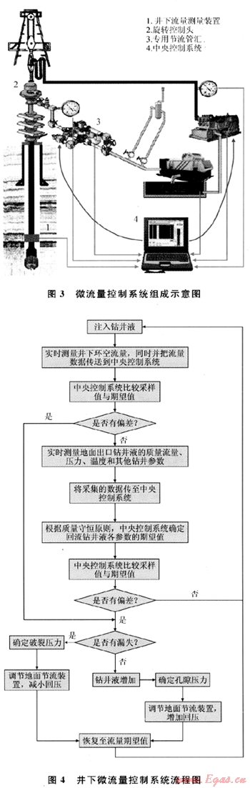 隨著油氣勘探開發(fā)難度的加大,人們相繼發(fā)展了雙梯度鉆井、泥漿帽鉆井、井底恒壓鉆井等各種控壓鉆井(MPD)方式來滿足復(fù)雜地區(qū)鉆井的需要[1~3]。目前控壓鉆井按照控制對(duì)象,可分為環(huán)空壓力剖面控制和環(huán)空流量控制兩類,上述幾種MPD都屬于環(huán)空壓力剖面控制,而微流量控制方法則屬于環(huán)空流量控制。相較于監(jiān)測(cè)環(huán)空壓力,對(duì)環(huán)空流量的監(jiān)測(cè)能極大地提高溢流、井漏等井下復(fù)雜情況監(jiān)測(cè)的準(zhǔn)確性和靈敏性。而對(duì)于環(huán)空流量監(jiān)測(cè)本身(尤其針對(duì)氣井),在地面監(jiān)測(cè)和在井下監(jiān)測(cè)也存在著很大的差別,直接影響到一口井后續(xù)井控的能力,甚至關(guān)系到鉆井作業(yè)的成敗。本文介紹的井下微流量控制方法能夠隨鉆監(jiān)測(cè)井下環(huán)空流量的變化,進(jìn)而調(diào)節(jié)井口回壓閥的開度,通過改變井底壓力來控制溢流或井漏的大小,從而實(shí)現(xiàn)對(duì)環(huán)空流量的控制。