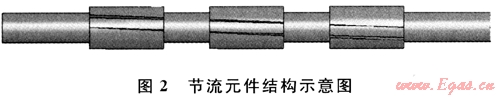 基于井下安全的考慮,這里選擇被廣泛應(yīng)用于鉆井現(xiàn)場的井下穩(wěn)定器作為節(jié)流元件的參考結(jié)構(gòu)。在產(chǎn)生需要壓差的前提下,為了保證鉆井液(包括巖屑)能夠沿流道順利通過節(jié)流元件而不發(fā)生阻塞,這里使用多級(jí)節(jié)流的方法來達(dá)到預(yù)期的節(jié)流效果,如圖2所示。