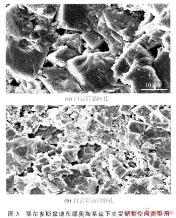 盆地東部下奧陶統(tǒng)馬家溝組發(fā)育大面積的厚層膏鹽巖。盡管奧陶系碳酸鹽巖烴源巖有機(jī)質(zhì)豐度較低。但是母質(zhì)類型好、熱演化程度高[4],況且賦存有大量瀝青、見有機(jī)包裹體[5~6],所以是有效的氣源巖。奧陶系鹽下主要為白云巖儲層,儲集空間以晶間孔、晶間溶孔、膏鹽晶??住⑨槧钊芸?、斑狀溶孔為主,并有成巖縫、構(gòu)造縫、巖溶縫伴生嘲。對鹽下烴源巖質(zhì)量、儲層發(fā)育特征和源儲配置關(guān)系的研究,是確定該區(qū)天然氣成藏潛力的重要依據(jù)。