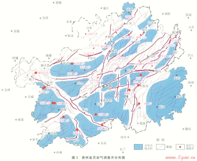 根據(jù)國(guó)土資源部油氣資源戰(zhàn)略研究中心組織實(shí)施的全國(guó)頁(yè)巖氣資源潛力調(diào)查評(píng)價(jià)及有利區(qū)優(yōu)選成果,全國(guó)頁(yè)巖氣地質(zhì)資源潛力為134.42×1012m3 (不含青藏區(qū)) [1],貴州省為13.48×1012m3,占總量的10.03%。