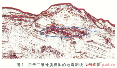 圖2為南海北部陸坡測線A的地震剖面,剖面上BSR非常清晰、連續(xù),振幅空白帶、與地層斜交等特征明顯。為了進(jìn)一步弄清水合物礦體的內(nèi)部速度特征,觀測系統(tǒng)設(shè)計以突出地震測線所穿過的水合物礦體作為目標(biāo)。