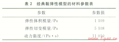 形成腔體模型后,需要對溶腔施加內(nèi)壓,通過施加法向應力將儲氣庫內(nèi)壓分別設置為10MPa、15MPa、17MPa、20MPa、23MPa、25MPa和30MPa,選擇經(jīng)典黏彈性蠕變模型[8-9]計算在不同內(nèi)壓條件下溶腔不同直徑處的蠕變變形量。經(jīng)典黏彈性蠕變模型材料參數(shù)如表2所示。