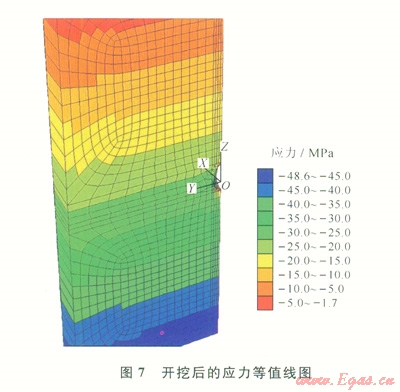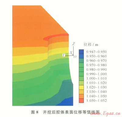 利用空模型形成腔體模型,通過設置groupl為空模型進行開挖,開挖后的模型如圖7、8所示。