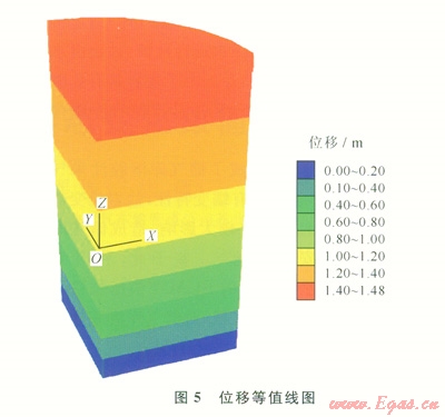 由圖4可以得出,該模型中最大不平衡力逐漸收斂至零,表示所建儲氣庫溶腔模型具有收斂性。由圖4、5可以看出,在建立的土體模型中,由于重力場的作用,最大位移和最大應力分別出現(xiàn)在模型的最底部。