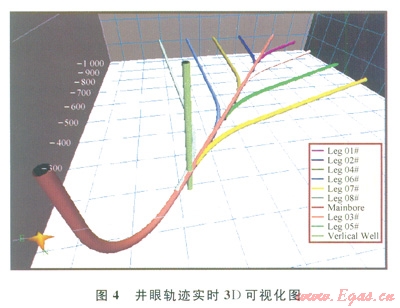 5)鉆井叮視化模塊。實(shí)現(xiàn)地面和井下信息的3D可視化,給技術(shù)人員和管理人員形象直觀地顯示實(shí)時(shí)數(shù)據(jù),輔助決策。3D可視化應(yīng)實(shí)現(xiàn)包括實(shí)時(shí)井眼軌跡、實(shí)時(shí)地質(zhì)模型和實(shí)時(shí)井眼狀況等整個(gè)鉆井過程的實(shí)時(shí)可視化,最終還應(yīng)該能夠?qū)崿F(xiàn)從地面設(shè)備到井下環(huán)境的一體化仿真。