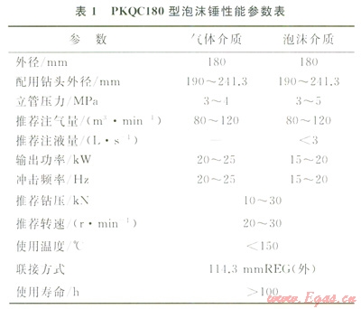 1)針對空氣錘在出水地層適應(yīng)性差的問題,研制了新型泡沫錘,能適應(yīng)氣體(干氣)和霧化泡沫(濕氣)鉆井介質(zhì),具備防止井下液體倒灌的能力。