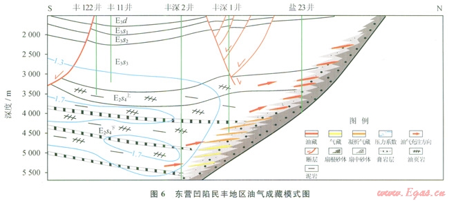 東營(yíng)凹陷是中國(guó)東部富油氣凹陷之一,含油氣豐度高,探明儲(chǔ)量大,目前已發(fā)現(xiàn)的油氣主要分布于埋深小于3500m的地層。隨著近期深層勘探的不斷深入,在東營(yíng)凹陷北部陡坡帶的民豐、利津等地區(qū)發(fā)現(xiàn)了凝析氣藏和氣藏,實(shí)現(xiàn)了深層勘探的重大突破,展示了深層較好的油氣勘探前景。但是,油氣藏的地質(zhì)條件和流體壓力存在較大的差異,在古近紀(jì)的構(gòu)造演化過(guò)程中,兩地區(qū)存在沉降中心的轉(zhuǎn)換,導(dǎo)致沉積作用、生烴作用和油氣富集發(fā)生較大的變化,直接表現(xiàn)出深層凝析氣藏和氣藏的地層壓力既有常壓,也有超壓。