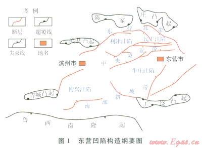 東營(yíng)凹陷是隸屬于渤海灣盆地濟(jì)陽(yáng)坳陷的次一級(jí)負(fù)向構(gòu)造單元,屬于新生代形成的斷陷盆地,呈典型的北斷南超構(gòu)造格局,北部為陡坡構(gòu)造帶(又稱東營(yíng)北帶),中部為洼陷帶和中央隆起帶,南部為緩坡構(gòu)造帶(1)。